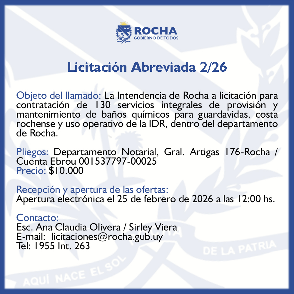 Contacto: Ana Claudia Olivera- E-mail: licitaciones@rocha.gub.uy