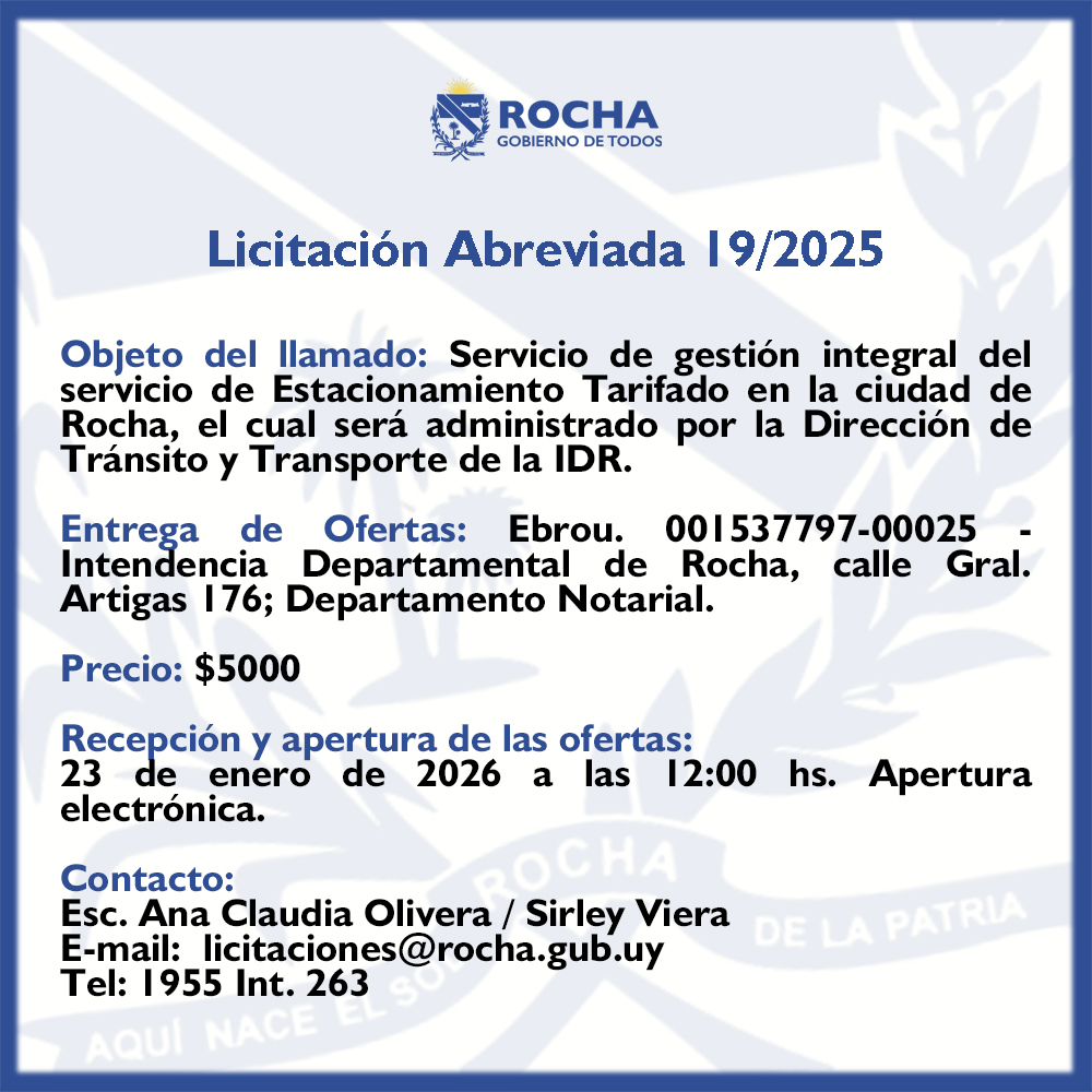 Contacto: Ana Claudia Olivera- E-mail: licitaciones@rocha.gub.uy