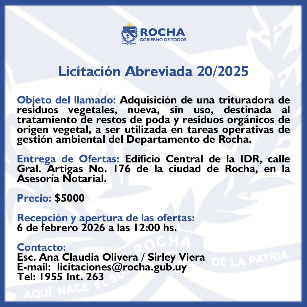 Contacto: Ana Claudia Olivera- E-mail: licitaciones@rocha.gub.uy