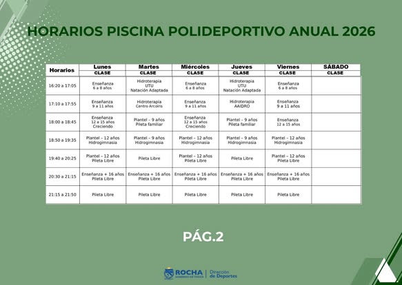 POLIDEPORTIVO ROCHA Â HORARIOS ANUALES 2026