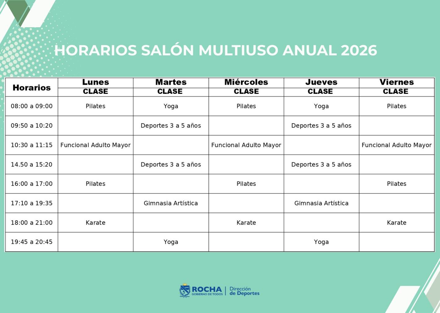 Te esperamos en el Polideportivo Rocha para seguir activos.