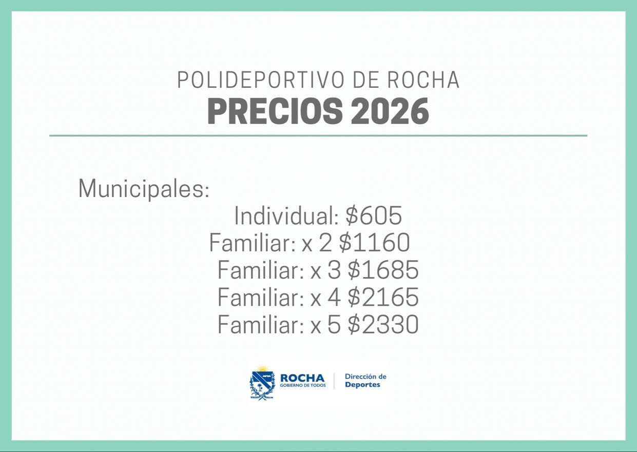 Ya están disponibles los horarios anuales de actividades del Polideportivo Rocha, con propuestas para todas las edades en Piscina, Gimnasio, Sala de Musculación y Salón Multiuso.