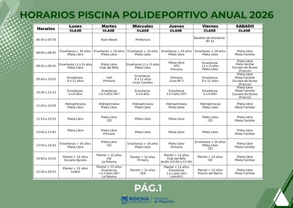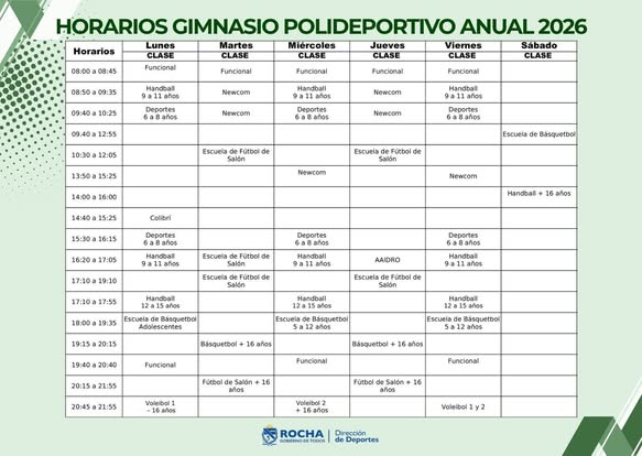 POLIDEPORTIVO ROCHA Â HORARIOS ANUALES 2026
