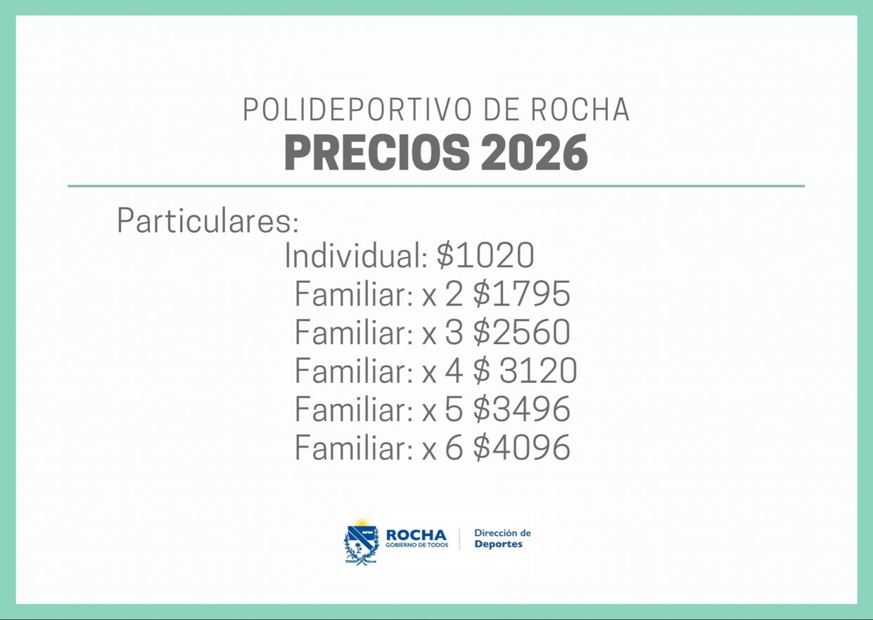 Ya están disponibles los horarios anuales de actividades del Polideportivo Rocha, con propuestas para todas las edades en Piscina, Gimnasio, Sala de Musculación y Salón Multiuso.