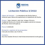 Pliegos: Intendencia Departamental de Rocha, Departamento Notarial, calle Gral. Artigas 176 de la Ciudad de Rocha y en Oficina de Rocha en Montevideo, 18 de Julio y Convención (Galería Caubarrere piso 5to.) y/o a través de la página web de la Comuna de Rocha www.rocha.gub.uy